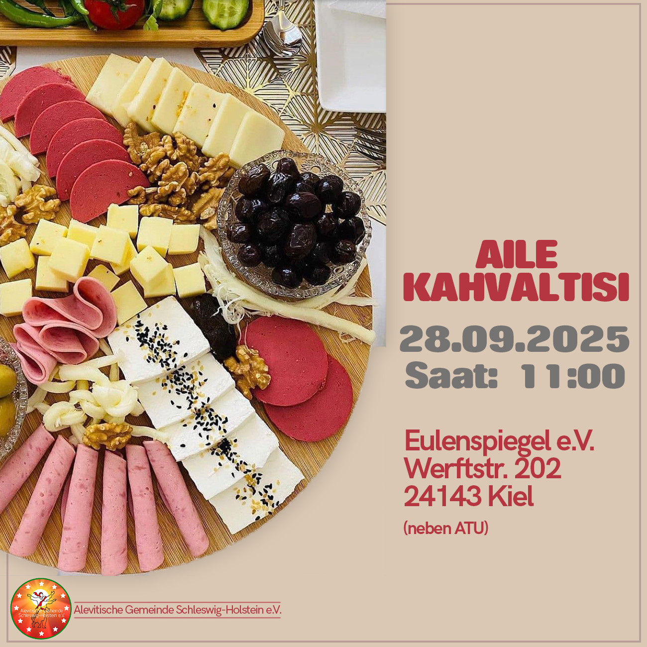 Alevitische Gemeinde Schleswig-Holstein olarak, siz değerli üyelerimizi ve dostlarımızı ilk kahvaltı buluşmamıza davet ediyoruz.